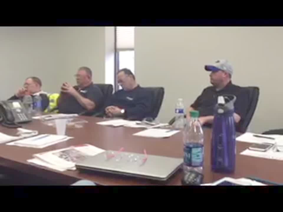 A man sleeps in his office chair during a meeting. The room claps to wake him up and the man wakes up and immediately claps his hands.