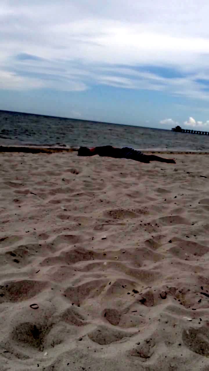 A man picks up a woman in a swimsuit at the beach, runs and carries her towards the water, and falls down.
