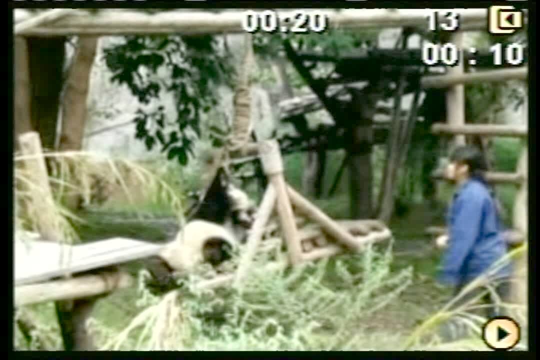 A man struggles to climb into a hammock in a store indoors. He makes several attempts to get on the hammock and falls off each time. He manages to get on in the end, but then still falls off.