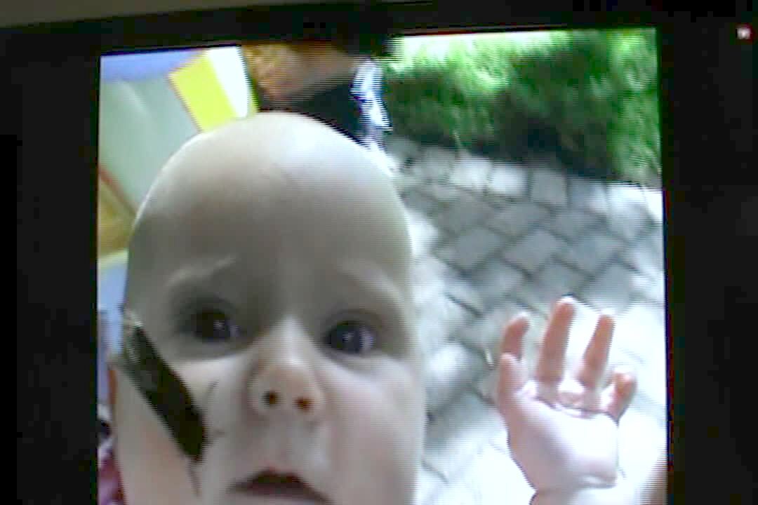 "Butterfly Butterfingers" A boy has places a butterfly on a baby girl's head outdoors and the girl acts shocked. The girl then reaches down and crushes the butterfly.