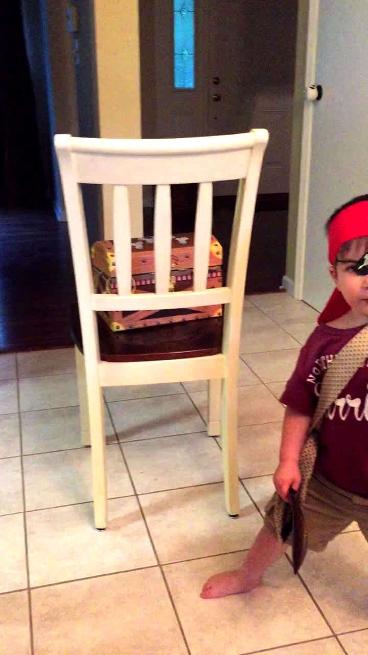 A young girl comes down the stairs in her penguin Halloween costume and her dog immediately attacks her.