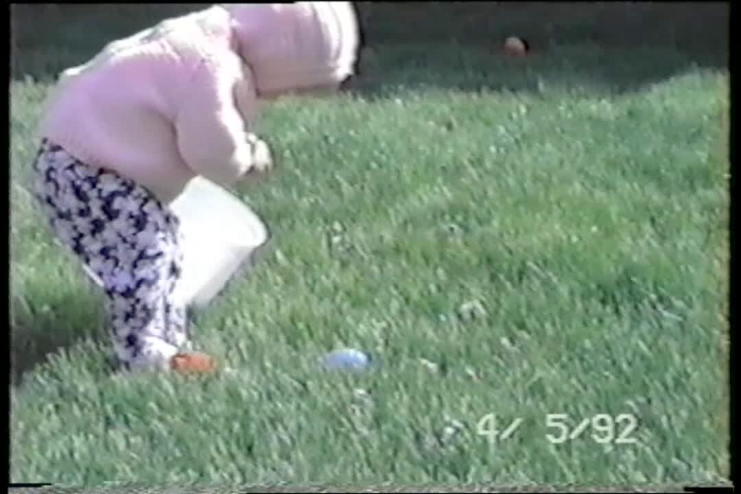 Tot scared of chain saw (noise) drops Easter basket & runs