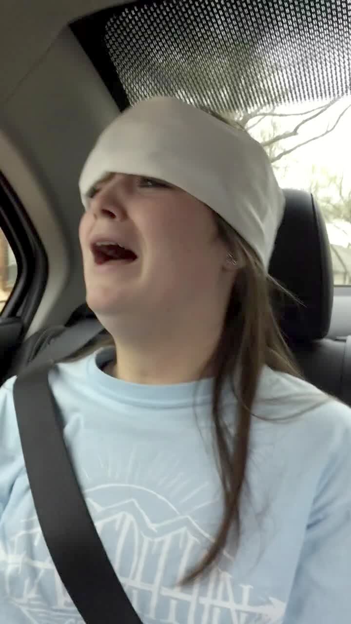 A boy sleeps in a car as an 18 wheeler gets towed backwards, facing the car behind it. A person screams to wake the boy up, he gets scared as he sees the 18 wheeler.