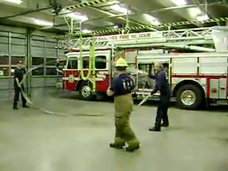 A woman screams and runs away when she opens a door and sees a dead snake in an office. Scare. Practical joke.