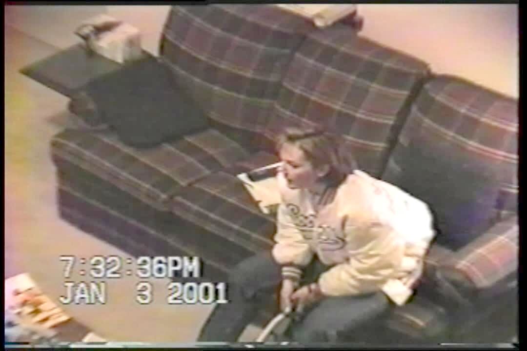Teen falls face first into the camera while on a bed
