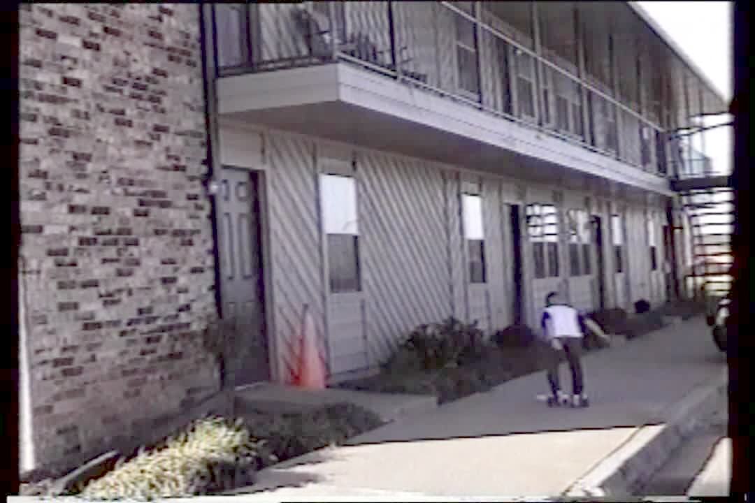 Young boy tries to throw newspaper on second floor of apartment. He falls down and the paper doesn't make it.