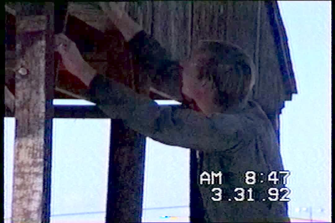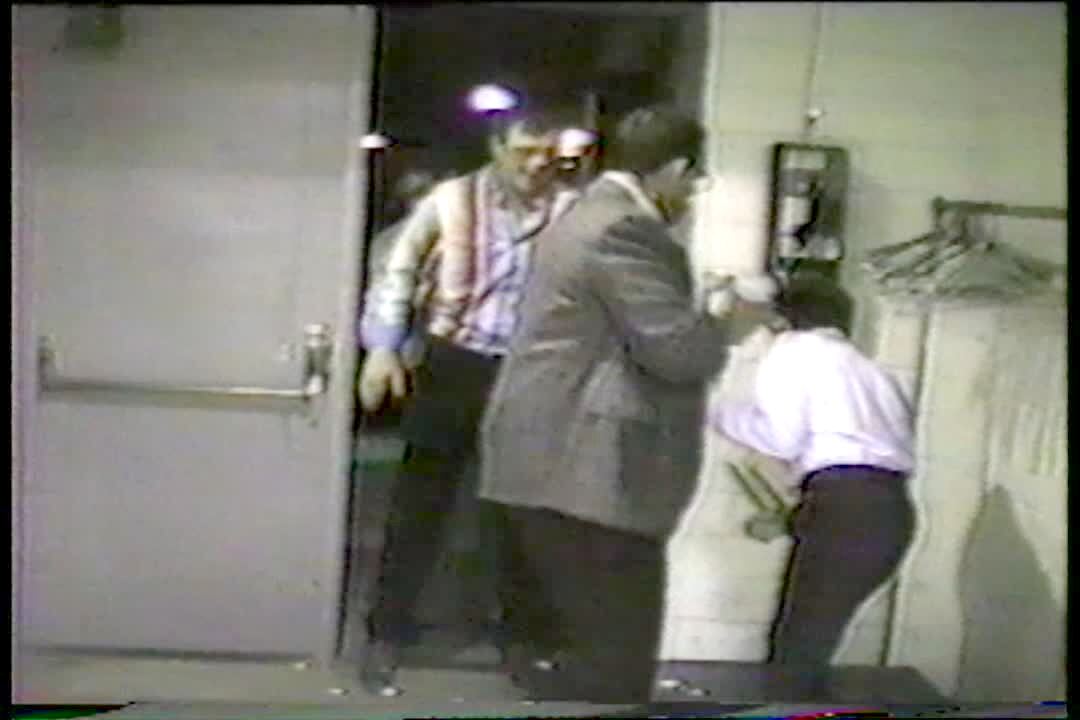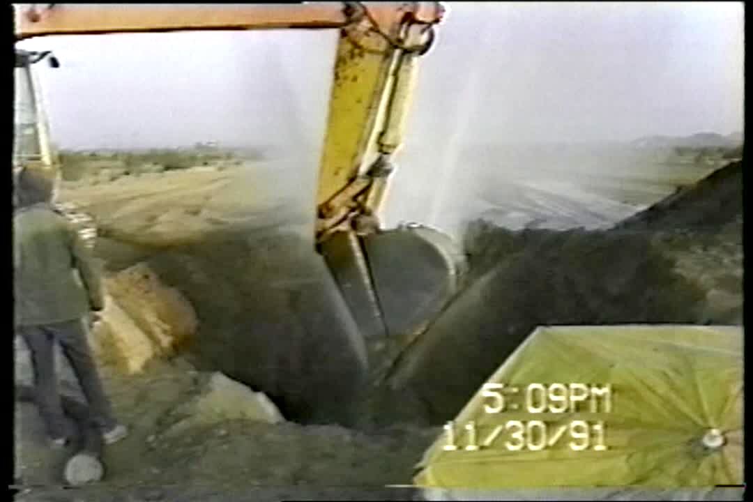 LEAK. Back hoe used to fix leak in ground, makes it worse, spray. date on screen 1991. No audio.