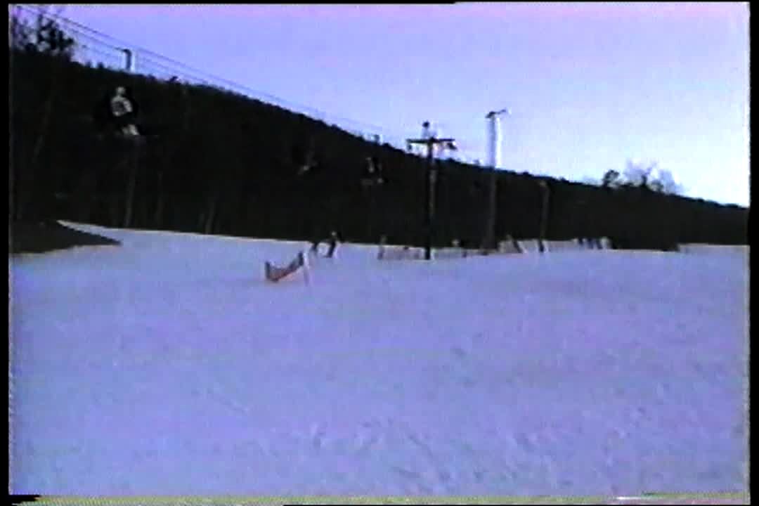 Winter - Kid snow skier can't stop, flies into air when skis hit fence