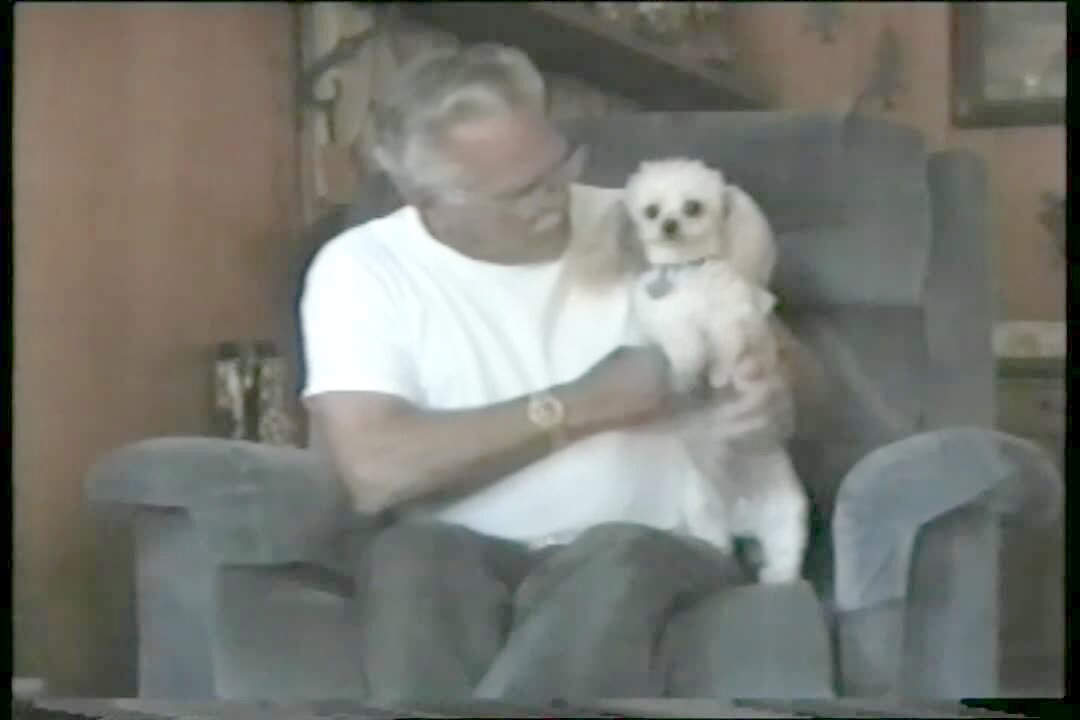 A man tells his dog that if she wants to eat, she has to bark Beethoven's 5th. The dog barks four times and it sounds like Beethoven and the man gives her the food. Pet trick.