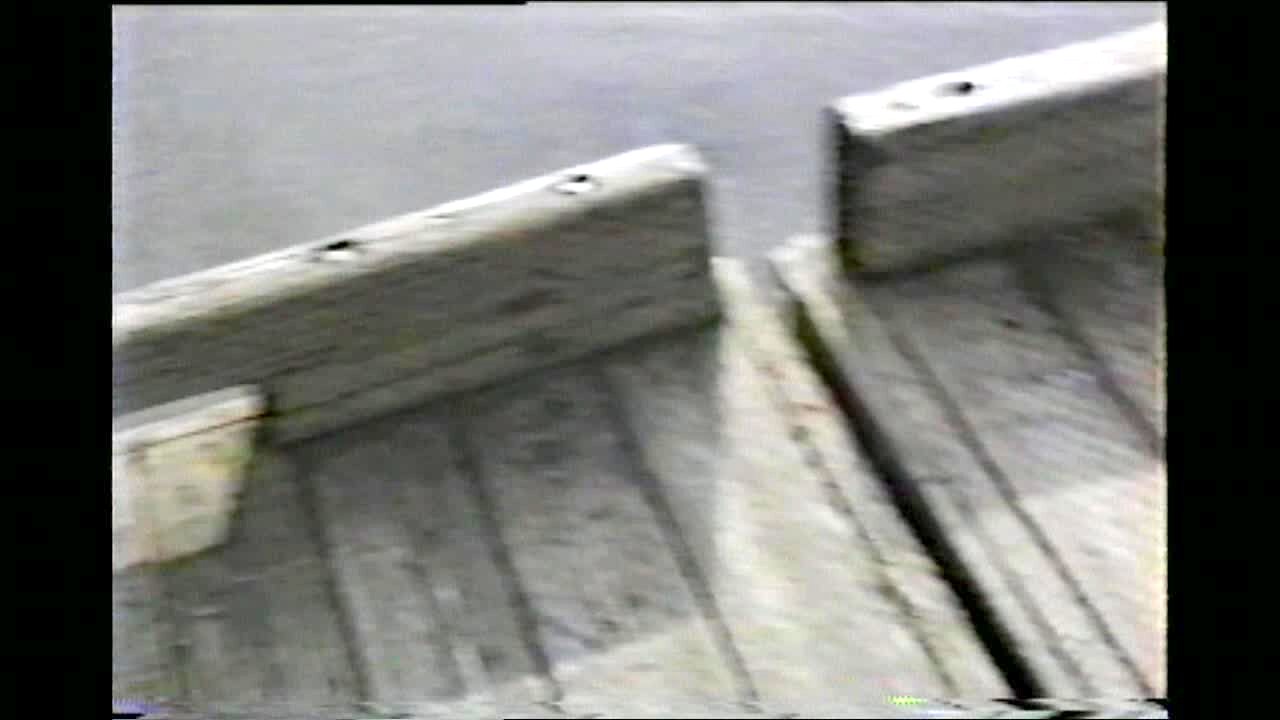 Security camera footage of a deer that runs in to a glass door. Shortly after the deer hits the door, a dog walks up to the door to look around.
