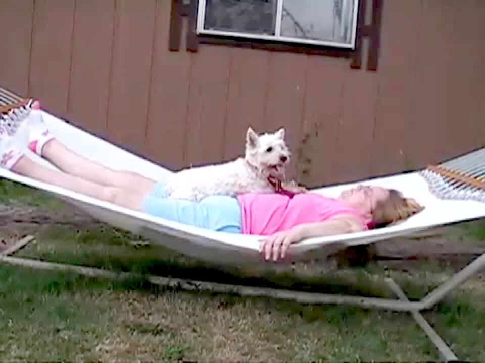Man pours ice water on teen girl while she's sleeping on the trampoline. Teen girl gets revenge by painting man's toenails when he's sleeping. Long for edit. Practical jokes.