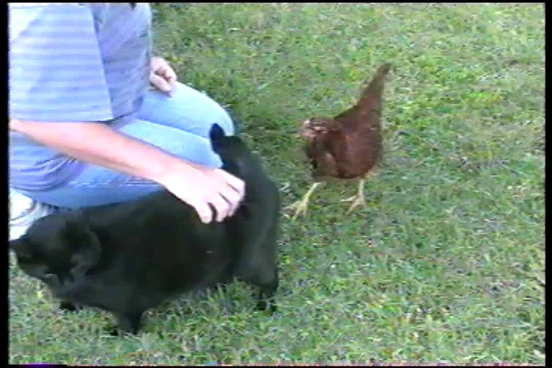 Bird/ Chicken pecks black cat's butt. Gross. Short clip