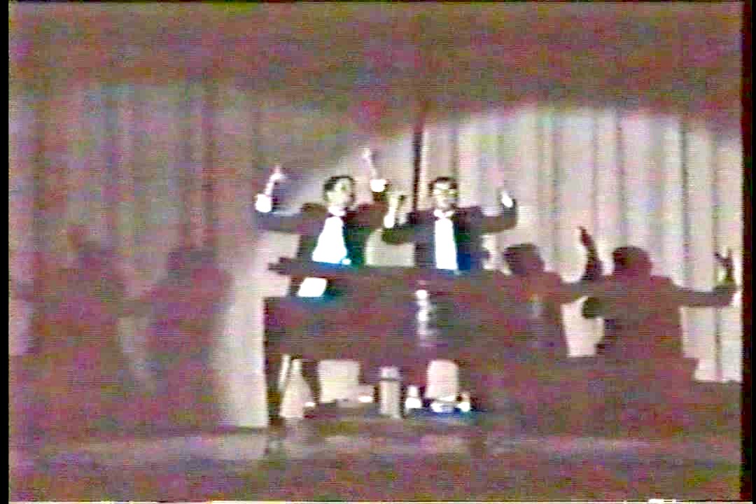 "Look Ma No Hands" 2 college aged men at talent show drop their pants and pretend to play piano with their penises.