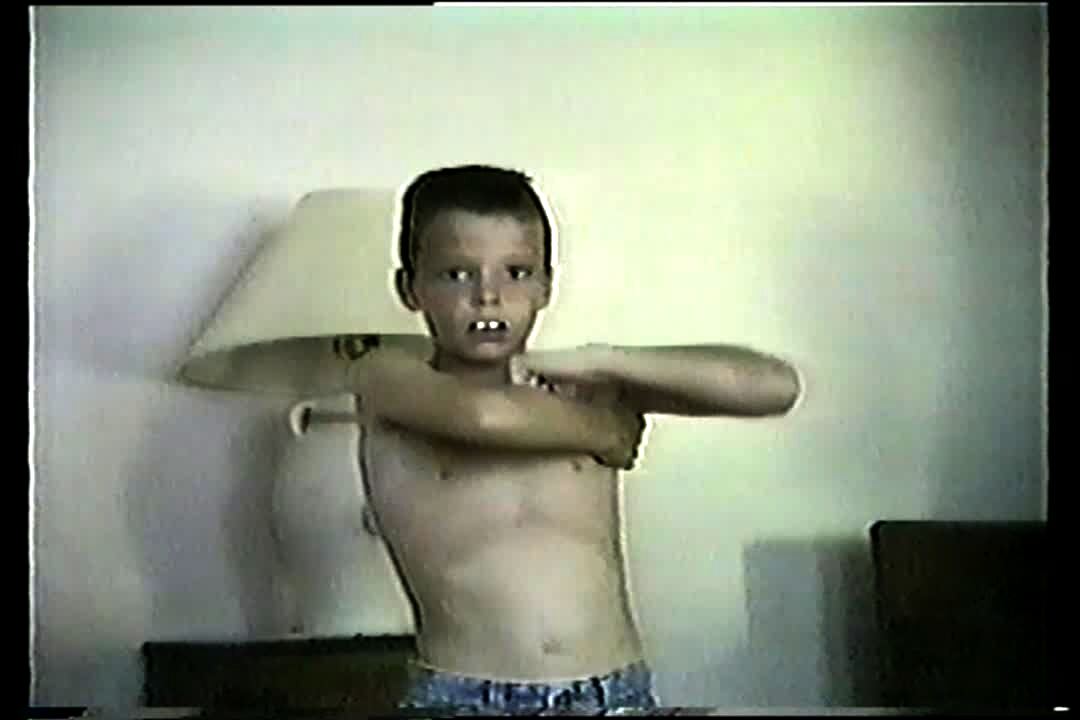 Chubby tot boy dances topless with tot sister to salsa music. *long for edit