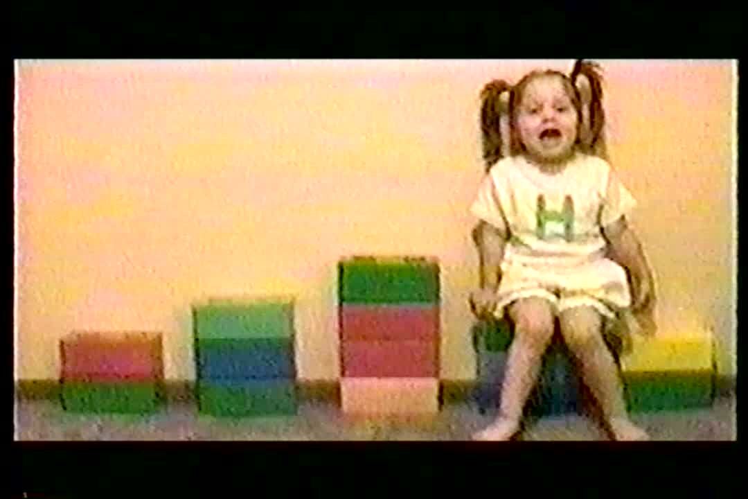 Tot girl in living room sings Star Spangled Banner. Cute.