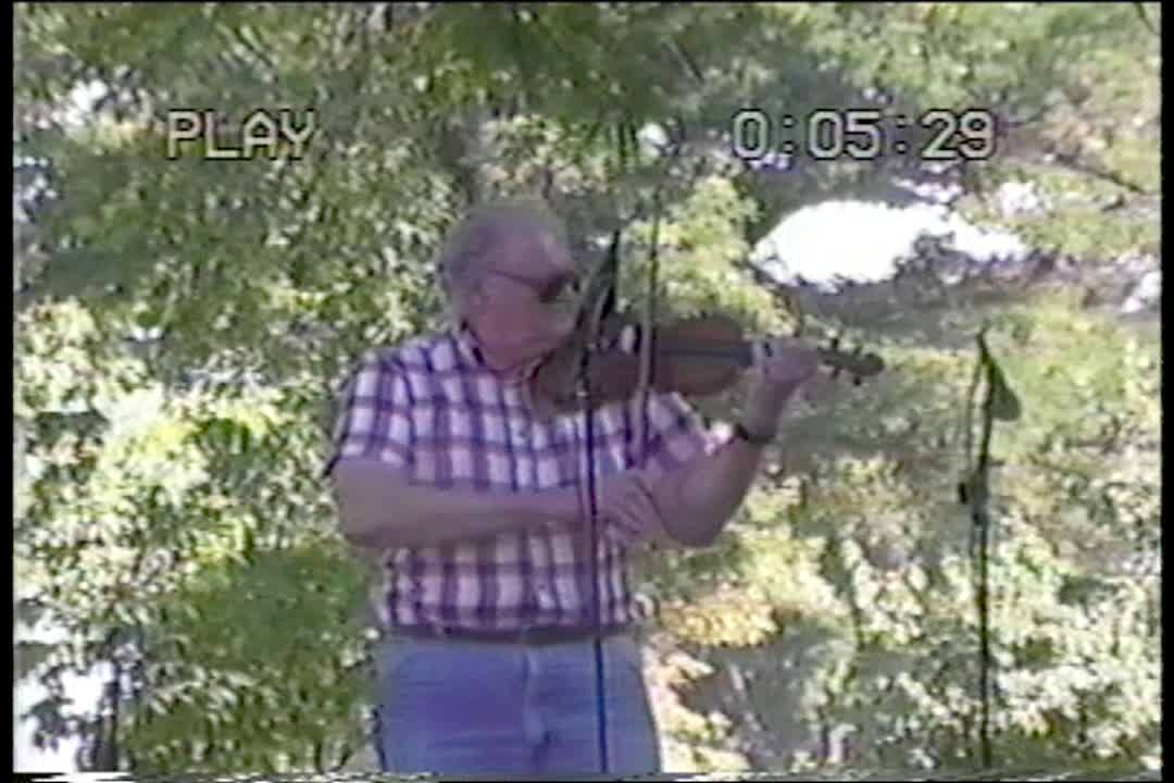 Grandpa's violin / fiddle falls apart in mid-song. Senior man.