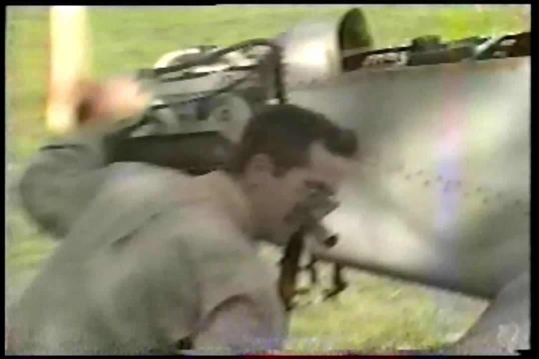 Plane Wind. Cameraman is blown over by gust of wind from plane.