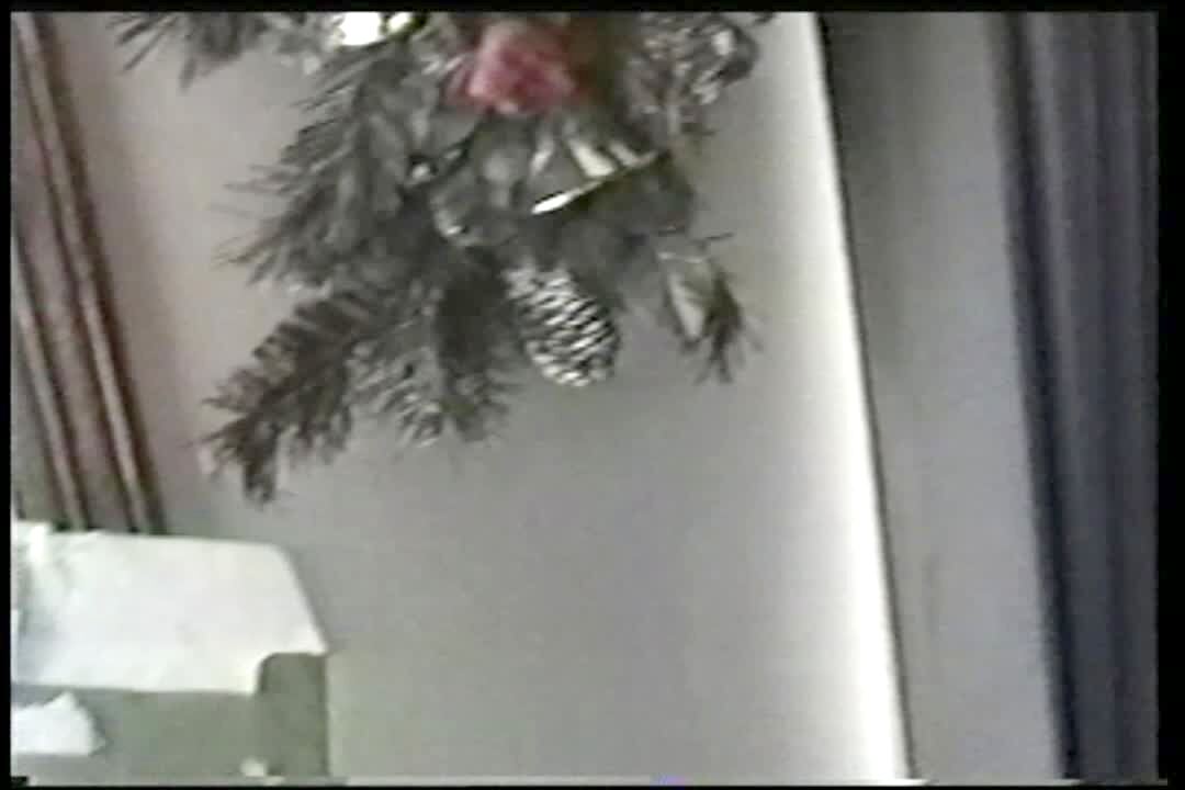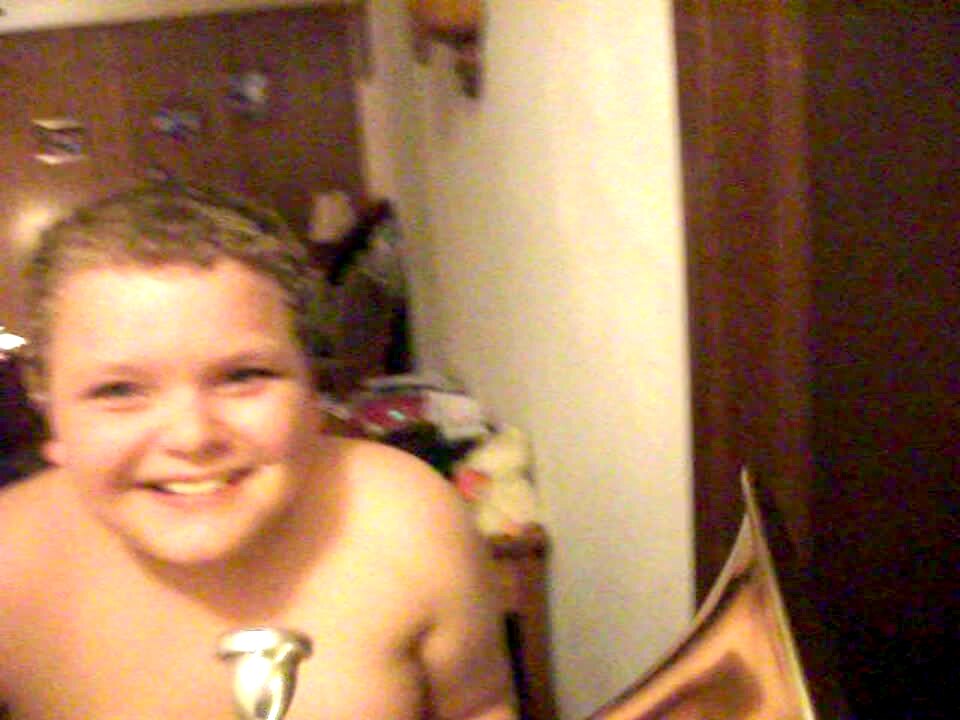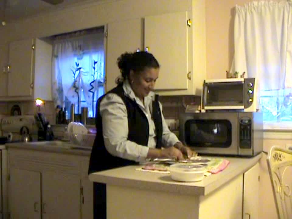 Teen boy tapes the nozzle of spray hose for a sink so when his mom turns the faucet on she gets sprayed with water. Son asks for a drink of water and mom gets sprayed. She says "You're dead, I was all ready to go to church". Practical joke