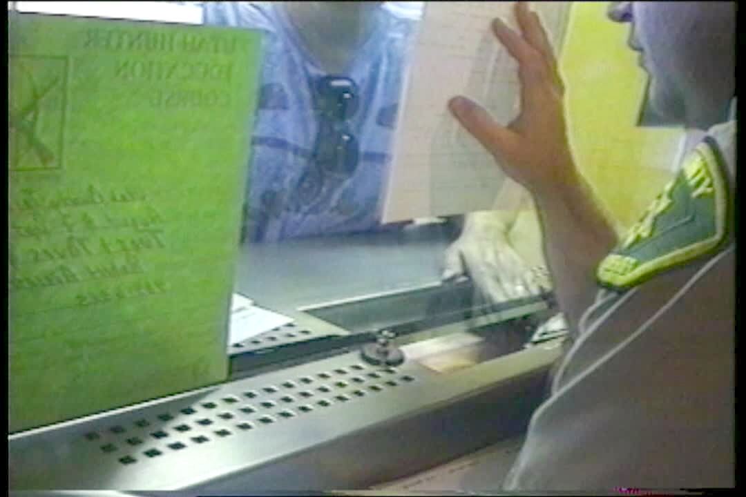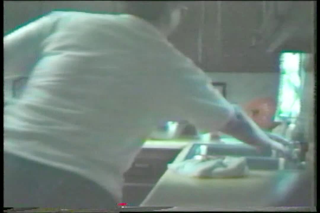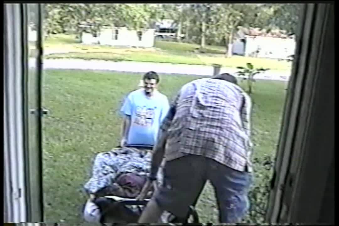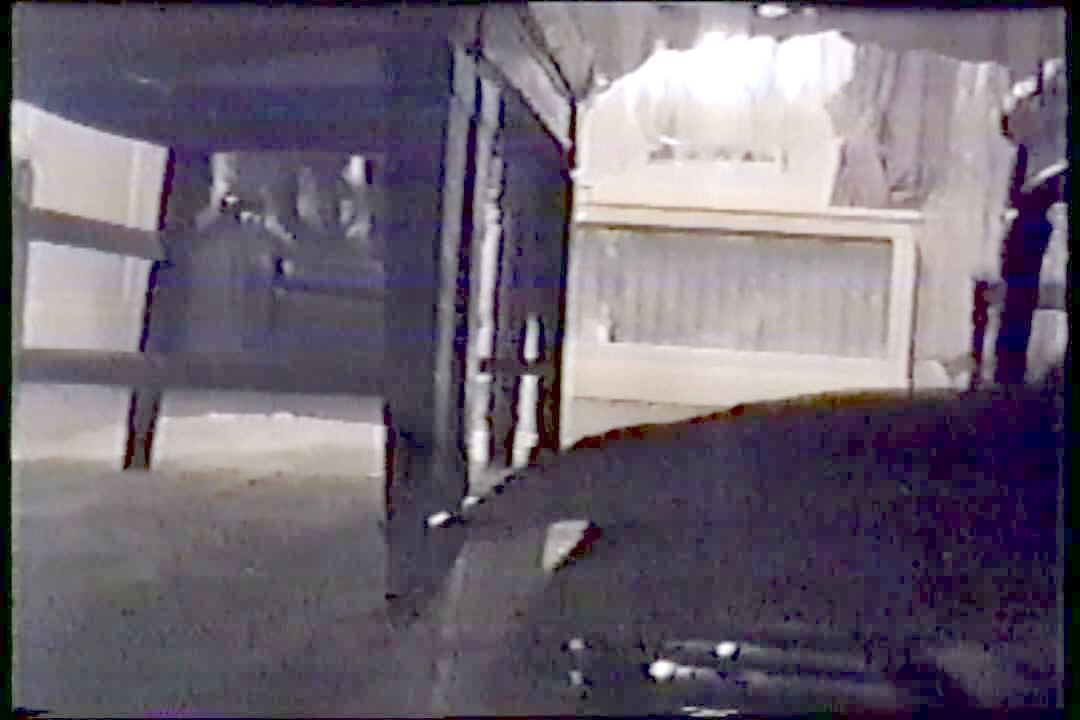 "For Whom The Doorbell Tolls" Young man hides under table with keyboard making doorbell sound. Woman keeps walking by asking "who is it." Practical Joke.