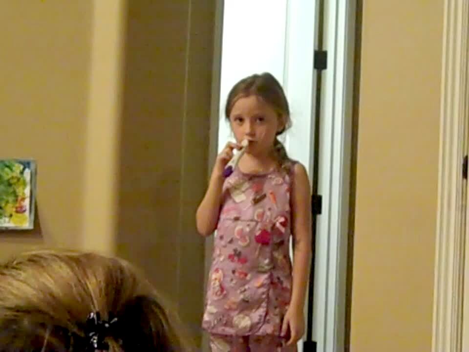 "Pregnancy Taste Test" Young girl tries to take her temperature using a pregnancy test, when mom tells her it's a "pee test," girl throws it and runs away.