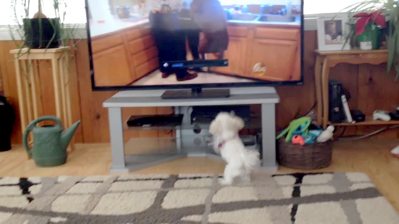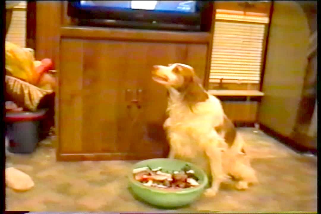 DOG FOOD JUMPER Dog jumps up & down while food is being prepared.