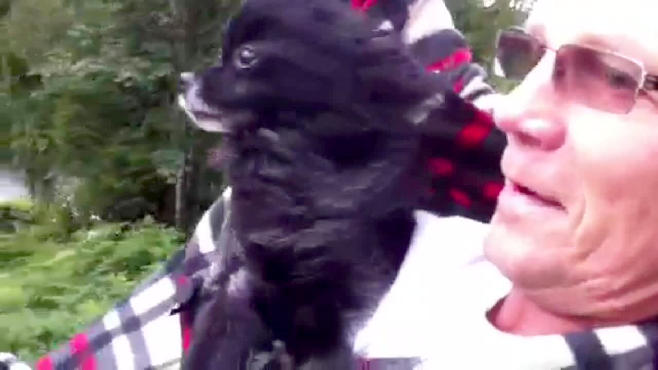 "Big Dog Pool Rescue" Big dog pulls little dog out of pool. Mom dog saves puppy.