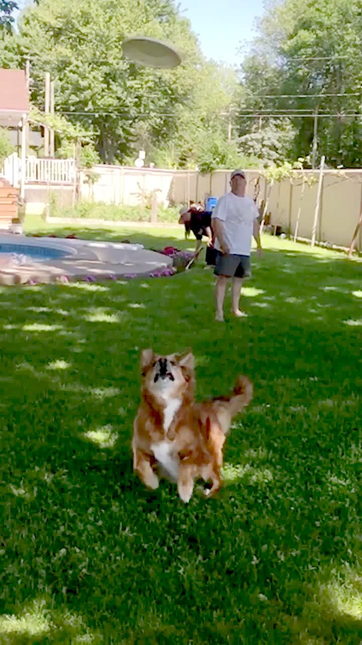 A dog jumps outdoors to catch a water balloon that she thinks is a ball when the water balloon pops in slow motion in her face.