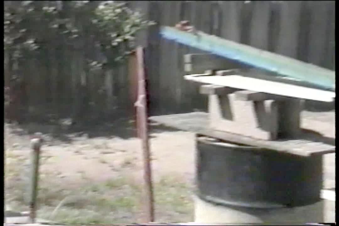 A dog sees his first Christmas tree indoors and when he lifts his leg to pee on it, and the girl behind the camera yells. AA: Christmas.