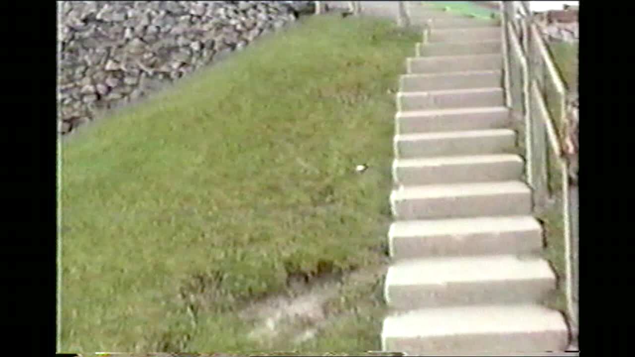 During miniature golf, ball is hit down hill, rolls down steps into amazing hole-in-one.