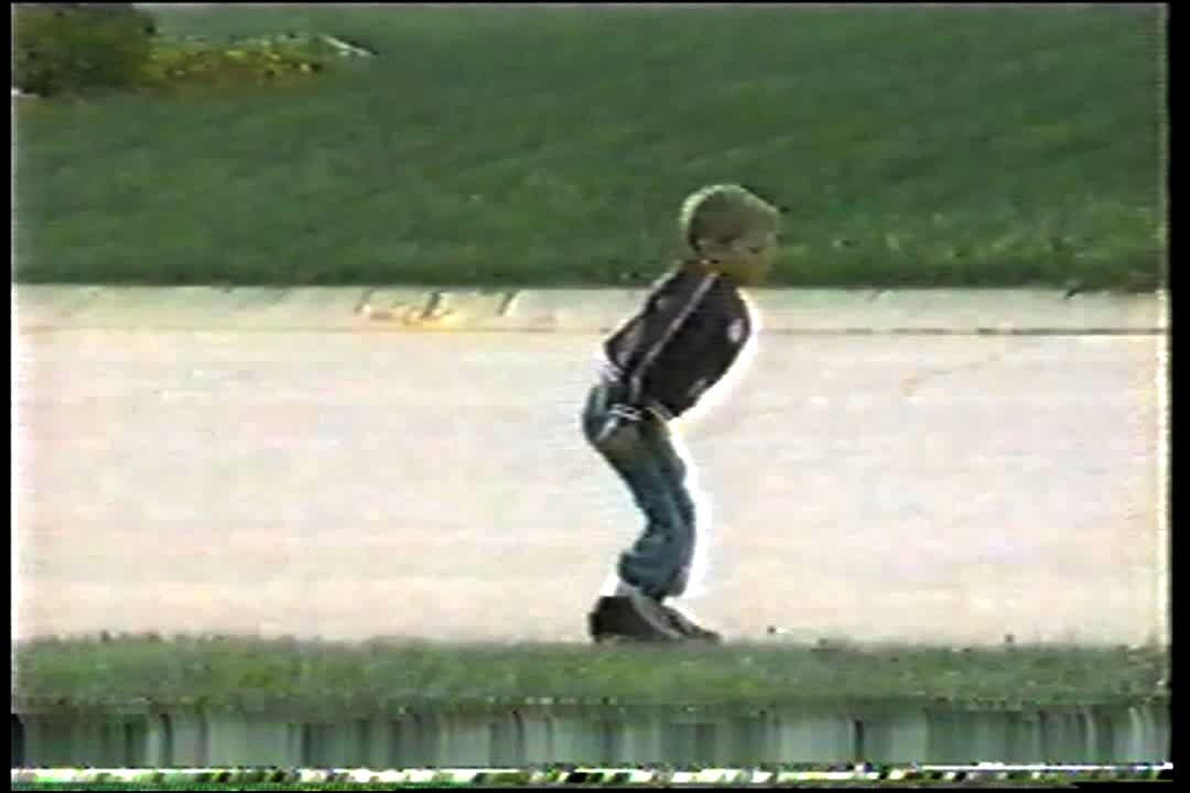 SLEDDING. Boy on sled, sled stops, he somersaults off.