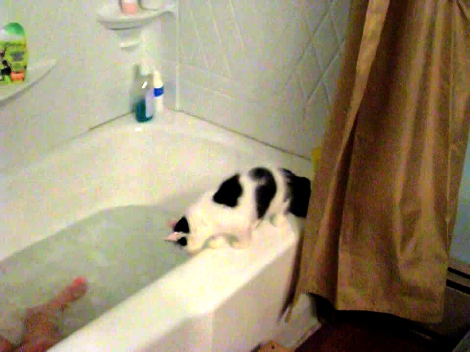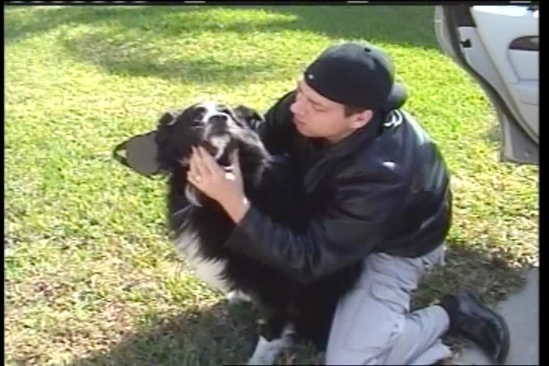 Man & woman bring home newly adopted dog, dog walks right into the backyard pool as if it wasn't there. Falls in water. Blind. Australian Shepherd.