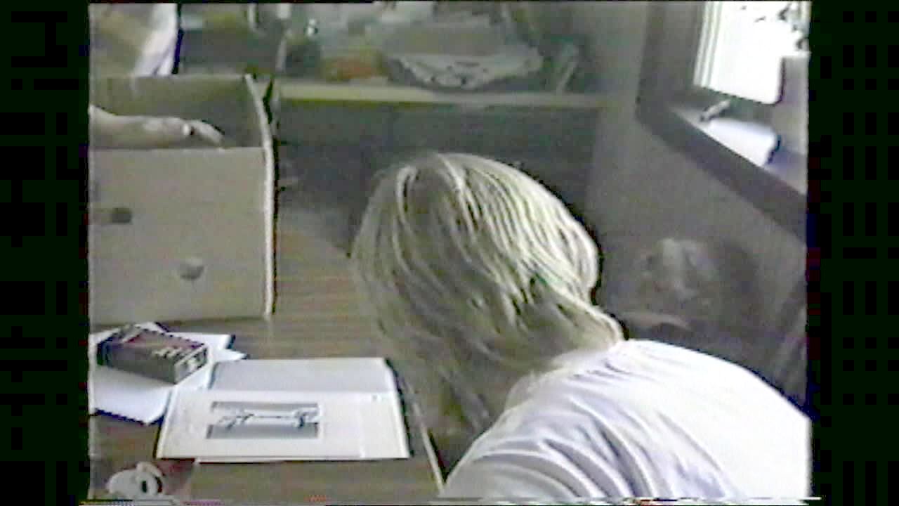 A young woman nervously peels paper off a can of biscuit dough, waiting for it to explode. Her dad shouts to scare her and she jumps and throws paper at him before the dough explodes in her hand and she screams.