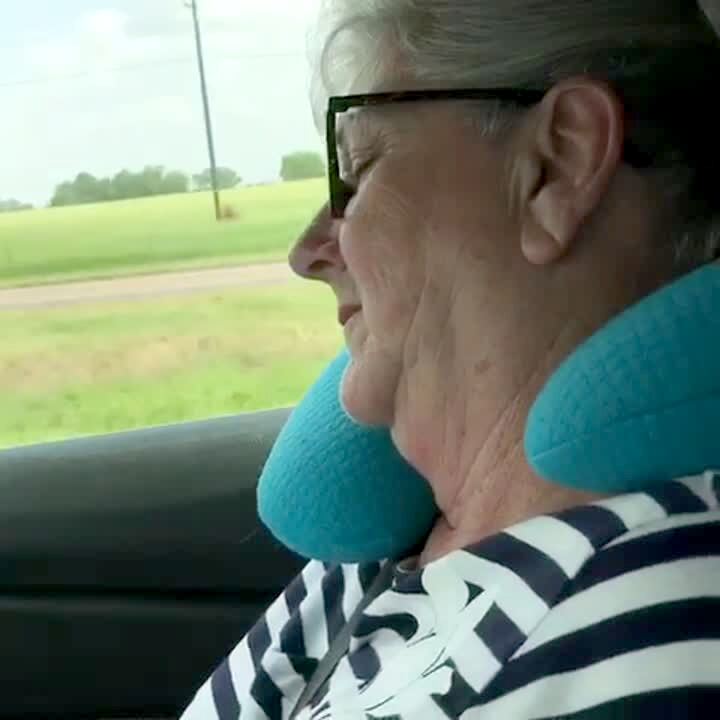 A senior woman loudly meows at the camera and laughs. Short heads. Short tails. Weird.