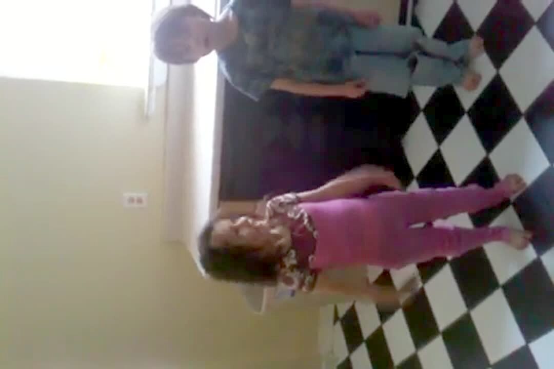 A young boy tells his dad in a front yard to hide a dandelion stem on his body and he will find it with magic. He holds a dandelion flower in front of his dad's mouth and tells him to blow but the boy shoves the flower into his dad's mouth and he coughs. A mom laughs and films.
