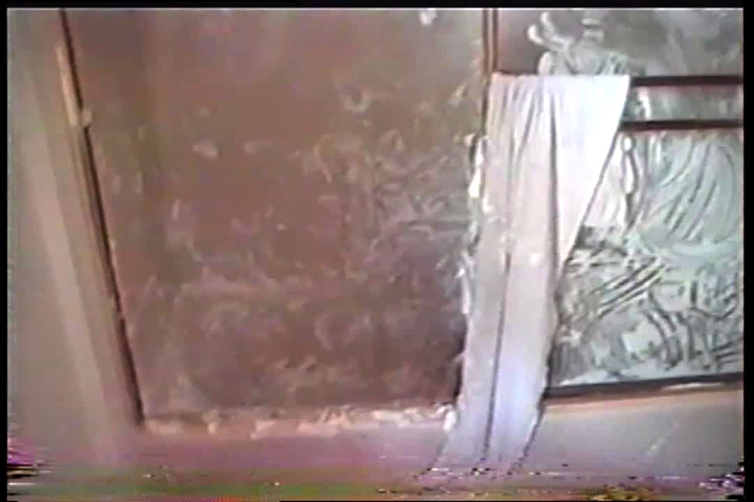 A young boy sings in a shower and is scared by an air horn and falls down. Nudity is pixilated. Practical joke