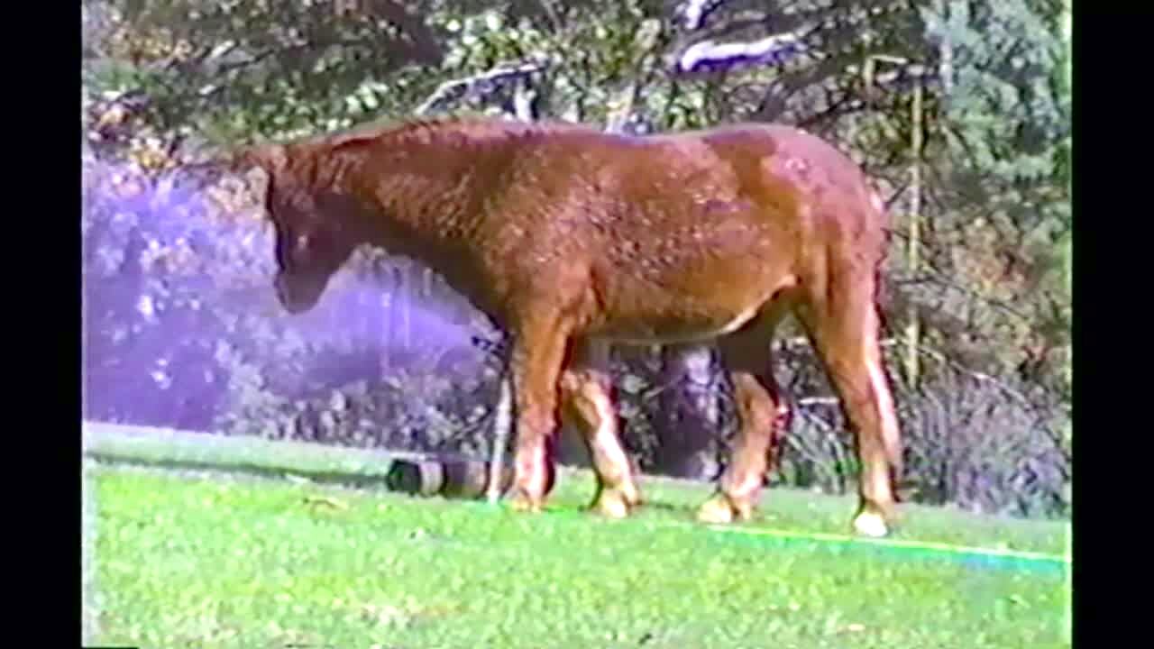 Horse Shower - Horse loves the sprinkler, then lies down & rolls over.
