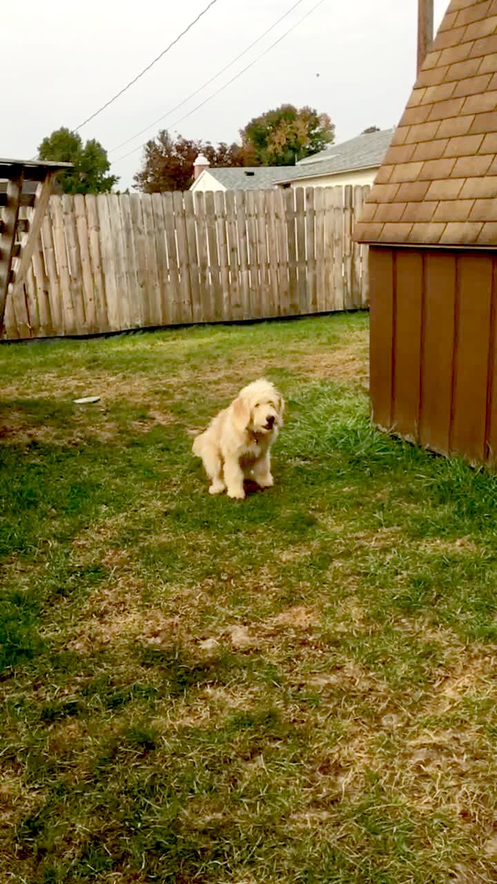 A dog runs past a tennis ball and falls on the ground trying to stop and fetch the ball. Vine/Instagram