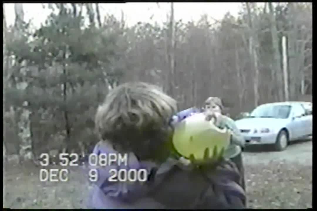 Young girl sits at a dining room chair with a mouth full of milk and laughs. She spits milk all the way across the table and splashes on the camera lens. "Somewhere Over the Rainbow" song plays over part of the clip.