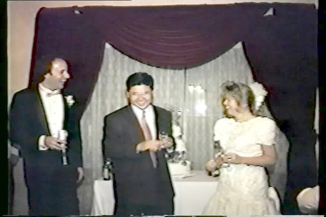 "Bugged Microphone" Man gives speech at wedding Anniversary party. Bug crawls up the microphone and then jumps onto man's nose during the speech. Podium, insect.