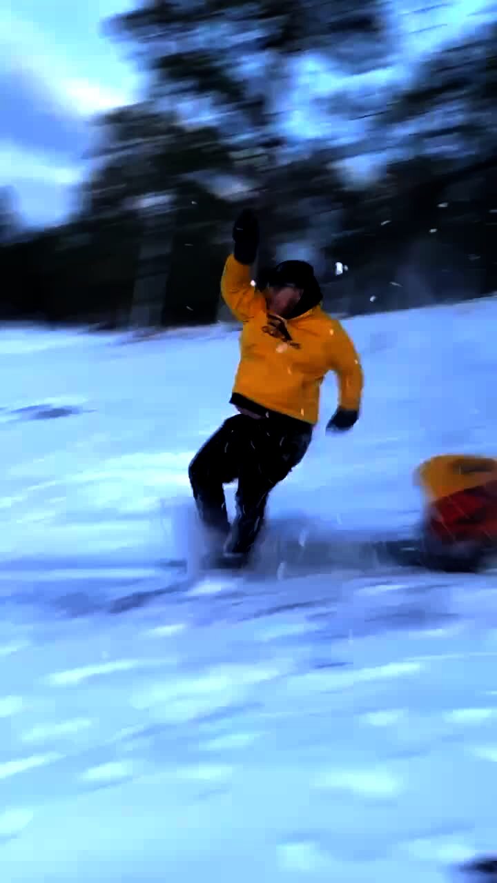 A woman tries to hold onto a boat as it rolls down a driveway, but she has to run to keep up with it and it crashes off-screen. Security footage.