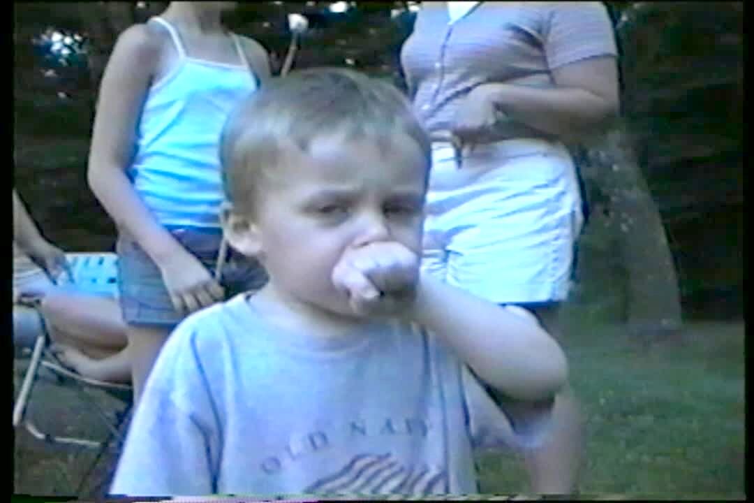 AA: Vacation. Bratty Kid. Temper tantrum kid hits video camera and it turns off.