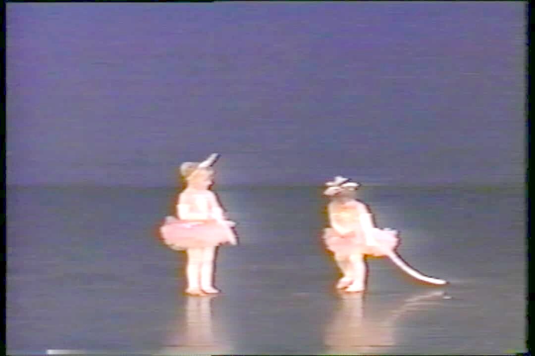 Young girl dressed as a pink mouse in dance recital starts chasing her tail in circles. When she catches it, the crowd cheers. Performance problems.