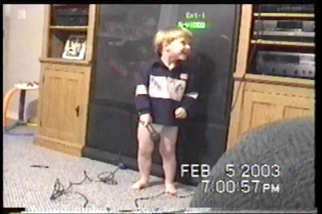 Tot boy is very upset that his mom wants to watch Survivor. Boy cries and begs to watch Tom Bergeron. America's Funniest Home Videos. TV, AFV.