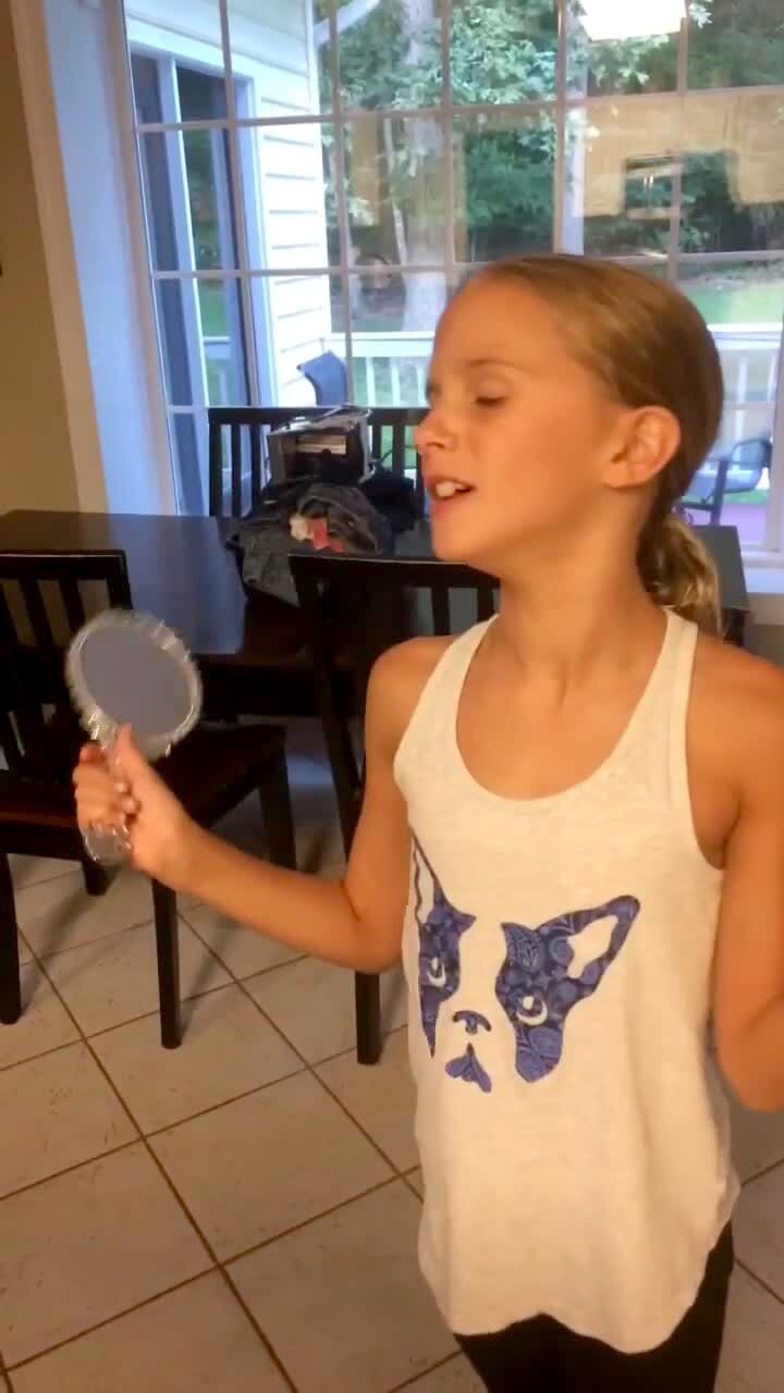 A young girl asks a handheld mirror who's the prettiest of them all and the mirror breaks and smashes on the floor