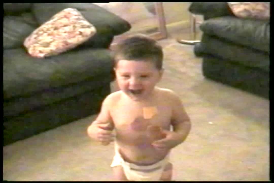Tot boy throws milk cup and hits his twin brother in head. No recovery, camera cuts away