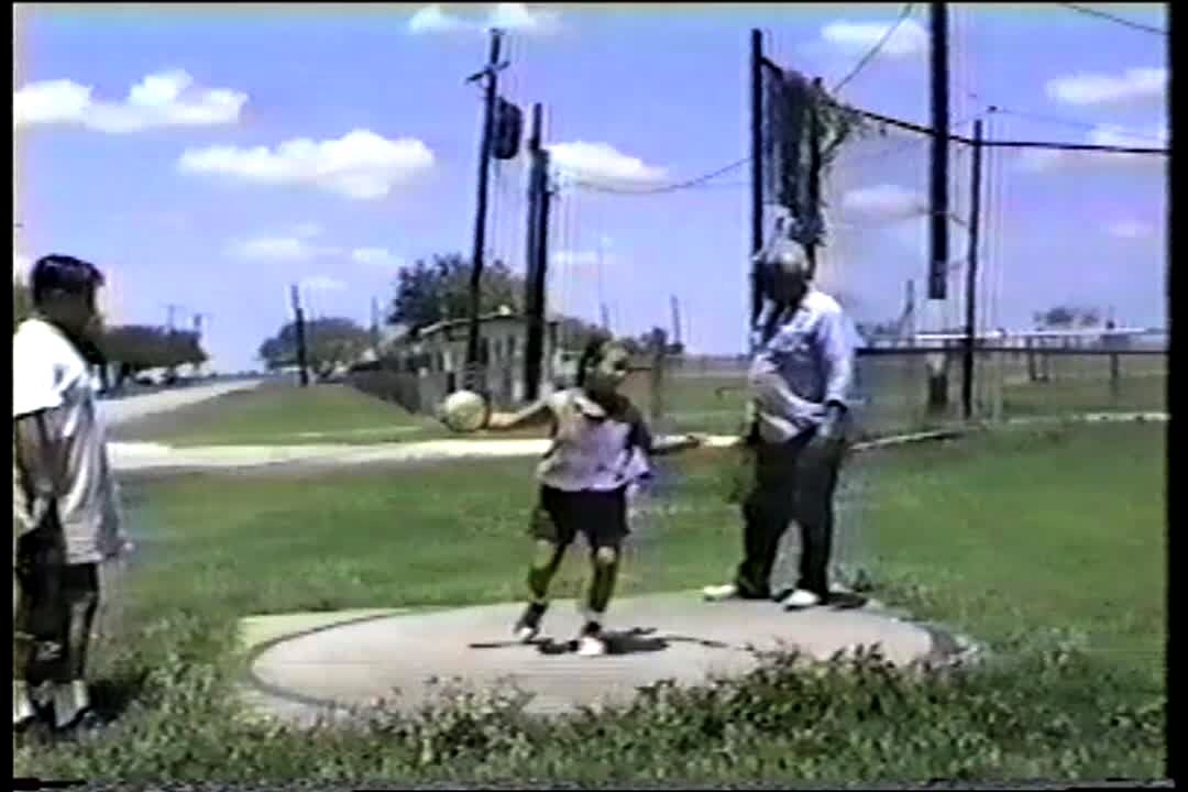 A girl repeatedly tries to throws a skeeball on a ramp in an arcade but cannot throw it hard enough. Her mother tries to help her and they launch the ball at the camera.