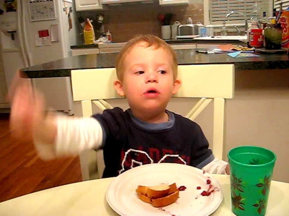 "Presidential Material" Little boy eating lunch recites famous quotes from various presidents, including Nixon's "I am not a crook." Kids say.