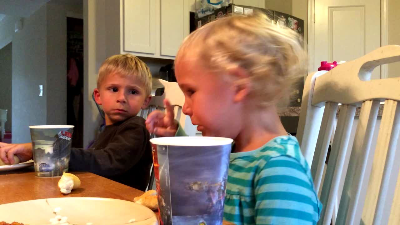 A woman asks her tot daughter if she finished her food indoors. She says yes and her mom asks "Do you care if I go check the garbage can?" The girl runs away screaming "no!"