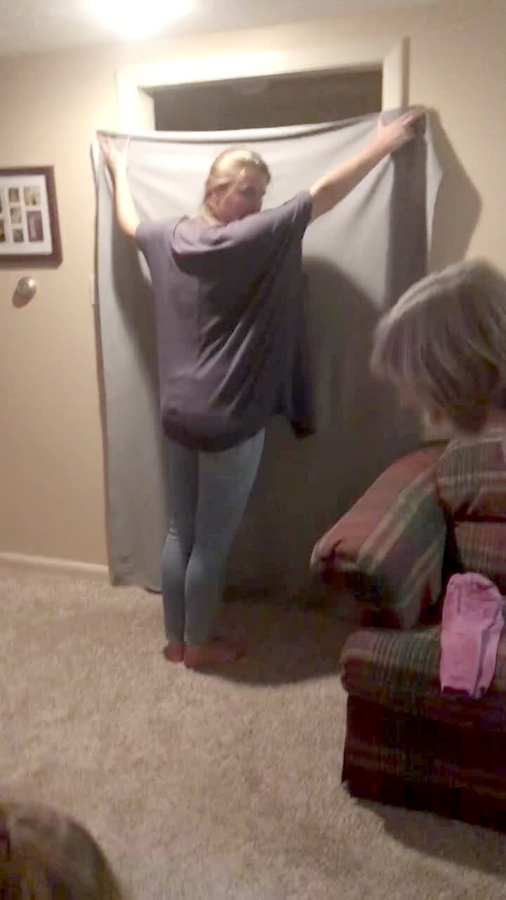 Two tot boys cry because their Dad wants them to try a peanut butter and jelly sandwich. They try to hide in a closet.