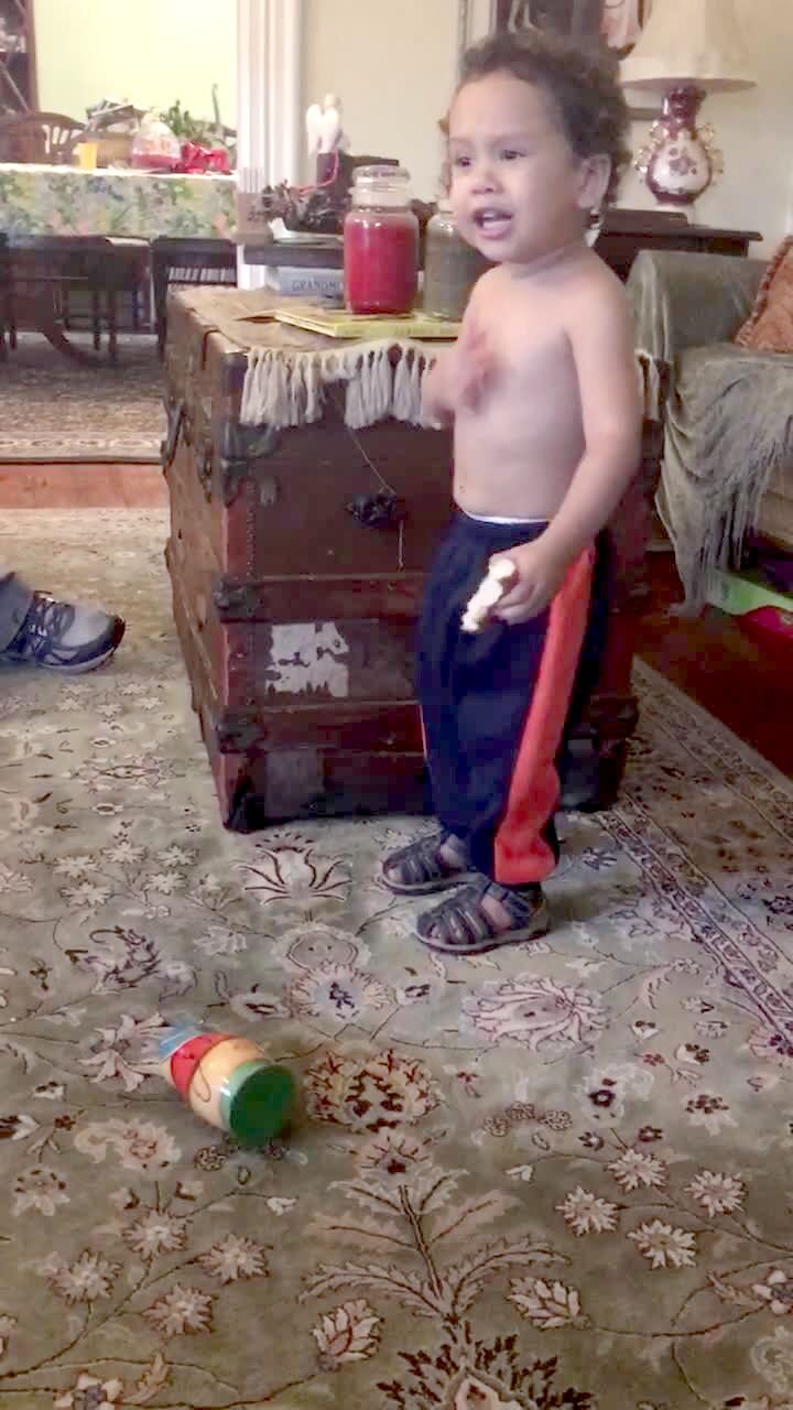 A tot boy argues with his grandparents and says "I'm the boss" repeatedly.